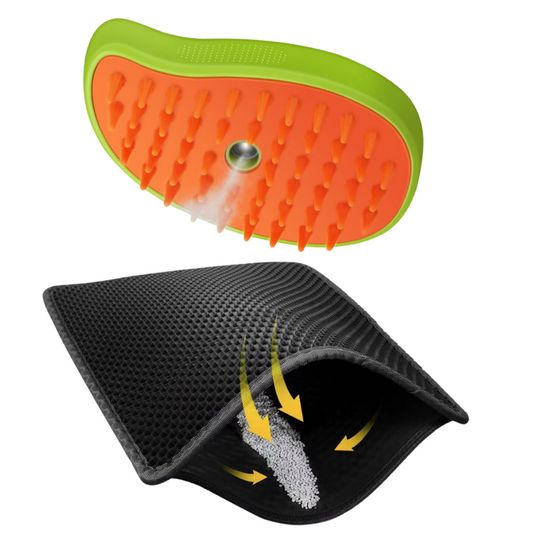 BAYTIGO® مجموعة العناية المتكاملة للقطط – فرشاة بخار 3 في 1 + حصيرة فضلات مزدوجة الطبقة
