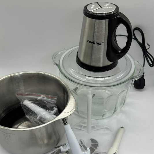 BAYTIGO® مفرمة روبوت HACHOIR 5 لتر مع وعائين (زجاجي و اينوكس)