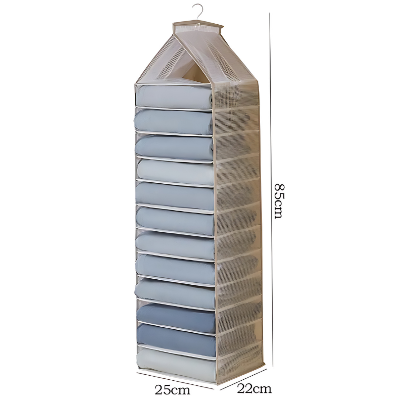 استمتع بتجربة تخزين ملابس مثالية مع منظم الملابس المزدوج بـ 12 رفًا. اطلب الآن لتحويل خزانتك إلى مساحة منظمة وأنيقة!
